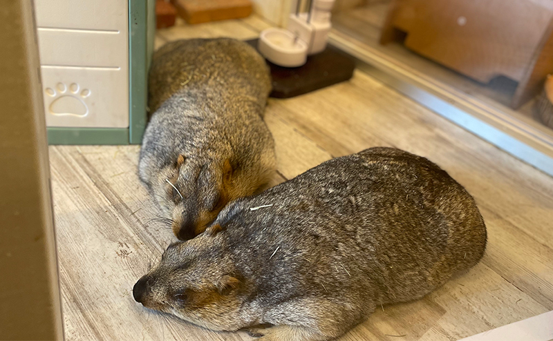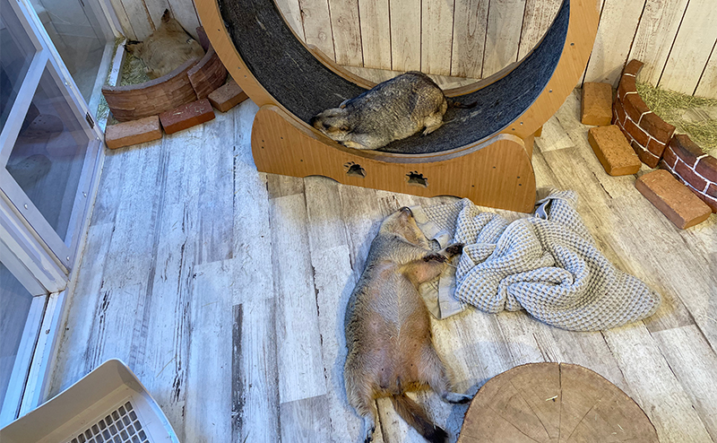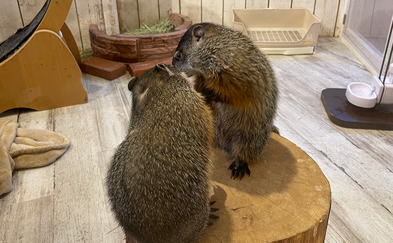 マーモットの当番は、動物看護師がマーモットたちの体調をみながら決めているそうです。排泄物もスタッフさんがすぐに片づけており、施設内はとても衛生的だと感じました。
