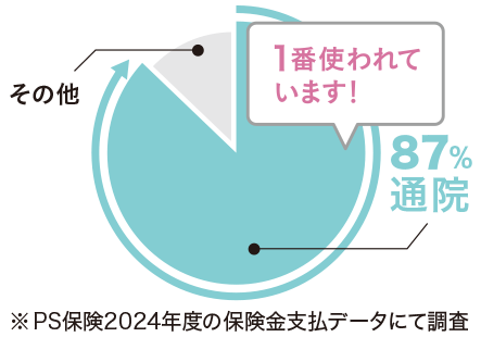 PS保険のデータによると、保険金支払いのうち、通院の割合はなんと約87%を占めています。